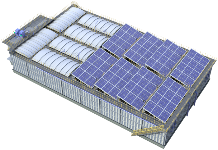 省錢、省事、省力、省心——華騏環(huán)保Sup-ASS模塊化裝配式水廠正以一種極簡(jiǎn)的方式逐步顛覆傳統(tǒng)的污水廠鋼砼結(jié)構(gòu)非標(biāo)準(zhǔn)化的建造模式。Sup-ASS裝配式水廠采用標(biāo)準(zhǔn)化鋼制模塊預(yù)制拼裝,結(jié)構(gòu)優(yōu)化模擬,智能化流水線生產(chǎn),使預(yù)制模塊高度標(biāo)準(zhǔn)化、精度高、拼裝靈活。預(yù)制模塊系自動(dòng)模壓波紋板模塊,平頂正弦波波形,相對(duì)于梯形或矩形結(jié)構(gòu),它的結(jié)構(gòu)更穩(wěn)定、強(qiáng)度更高、材料更省,因此較之混凝土構(gòu)筑物的造價(jià)更有優(yōu)勢(shì)。Sup-ASS裝配式水廠運(yùn)輸及施工方便靈活,不受運(yùn)輸尺寸、構(gòu)筑物體積、污水處理工藝的限制,可以像積木一樣根據(jù)項(xiàng)目的實(shí)際需求進(jìn)行自由的組合;Sup-ASS裝配式水廠所有模塊由螺栓與鎖扣緊固連接、拆裝方便,可重復(fù)使用,即使遇到規(guī)劃調(diào)整的情況,整廠亦可拆卸搬遷,循環(huán)使用率可達(dá)100%;Sup-ASS裝配式水廠工期較之傳統(tǒng)水廠可縮短70%左右,比如,日處理量5萬(wàn)噸的傳統(tǒng)鋼砼結(jié)構(gòu)水廠建設(shè)周期至少需要一年左右的時(shí)間,而Sup-ASS無(wú)需焊接,螺栓拼裝,僅三個(gè)月便可完工通水。Sup-ASS裝配式水廠標(biāo)準(zhǔn)化設(shè)計(jì)、智造的生產(chǎn)方式,單元模塊化拼裝方式,使施工全過(guò)程無(wú)污染真正做到綠色低碳,契合30、60碳達(dá)峰碳中和目標(biāo),實(shí)現(xiàn)傳統(tǒng)環(huán)保工程模式的顛覆。