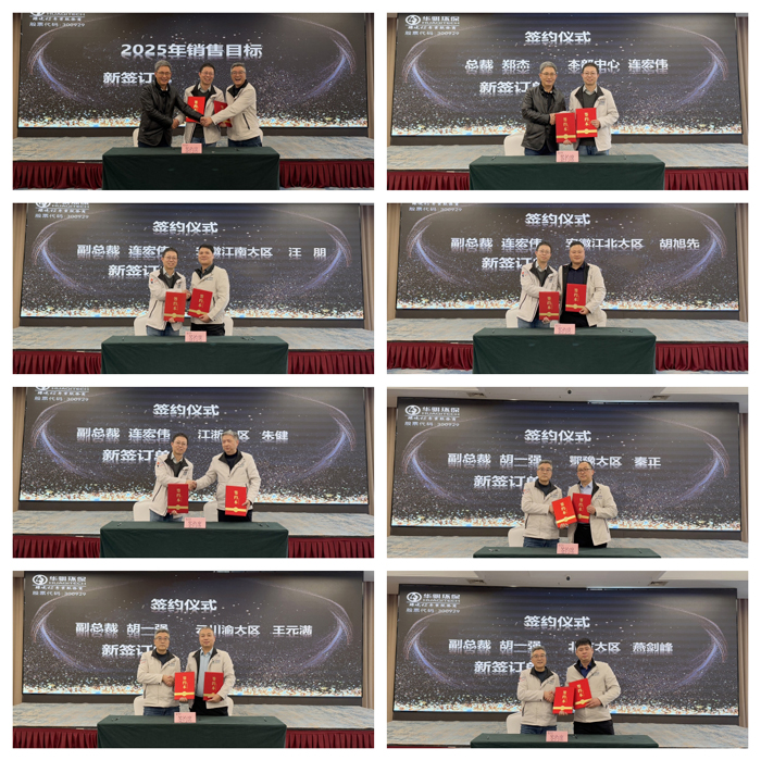 在隨后的市場經(jīng)營及品牌推廣工作匯報環(huán)節(jié)中,市場本部中心、安徽江南大區(qū)、安徽江北大區(qū)、江浙大區(qū)、鄂豫大區(qū)、云川渝大區(qū)、北方大區(qū)、品牌管理部的代表共同總結(jié)2024年市場環(huán)境及指標完成情況。會議指出,市場部門要以國家“數(shù)字化”戰(zhàn)略為導向,以“智慧引領未來”為主線,制定行之有效的產(chǎn)品推廣計劃并予以貫徹執(zhí)行,是為2025年的重點工作。匯報結(jié)束后,市場各大區(qū)舉行了2025年銷售目標簽約儀式。