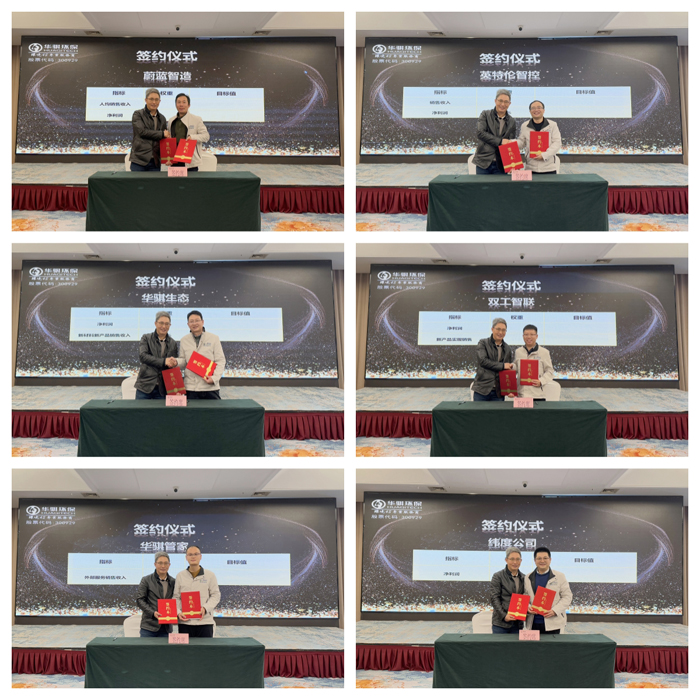 華騏環(huán)保旗下安徽英特倫智控股份有限公司、安徽華騏蔚藍智能裝備有限公司、安徽華騏管家環(huán)保咨詢服務有限公司、安徽華騏生態(tài)環(huán)境材料有限公司以及2024年新成立的安徽雙工智聯(lián)環(huán)保科技股份有限公司、馬鞍山市緯度建筑工程有限公司六家主要專業(yè)子公司齊聚一堂,匯報了2024年的經(jīng)營成果、核心業(yè)務發(fā)展,制定了主要專業(yè)子公司三年發(fā)展規(guī)劃,并舉行了2025年承諾指標簽約儀式。