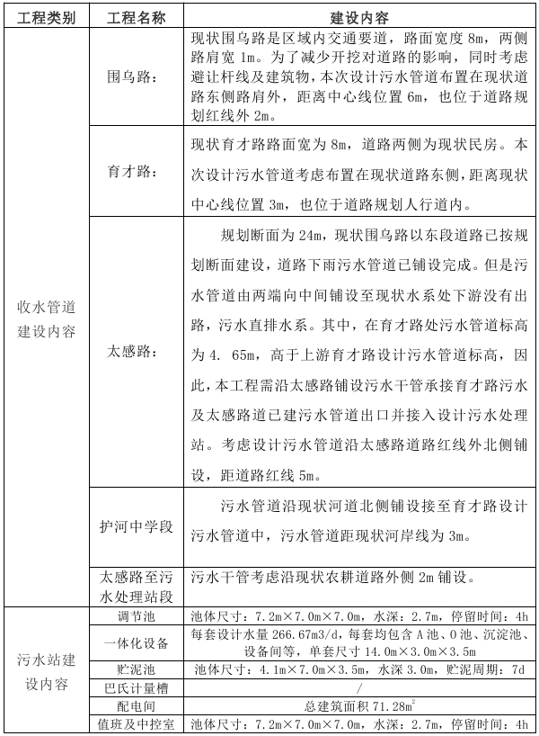本項(xiàng)目新建污水處理站一座,規(guī)模為800t/d。新建污水管網(wǎng)5.75公里,管徑為DN400-DN600,采用開挖、牽引相結(jié)合的施工方式。建設(shè)項(xiàng)目工程組成見表1。
