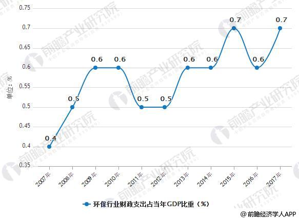 2007-2017年環(huán)保行業(yè)財政支出占當(dāng)年GDP比重情況