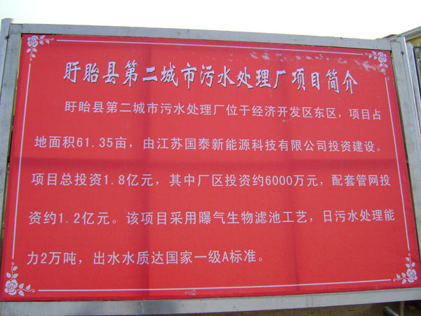 江蘇省盱眙縣第二污水處理廠一期工程