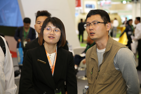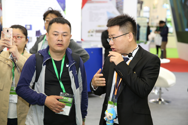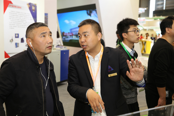 鄭俊為客人講解技術(shù)與產(chǎn)品