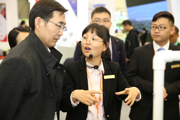 蘇伊士亞洲地區(qū)執(zhí)行副總裁孫明華(左二)參觀展位