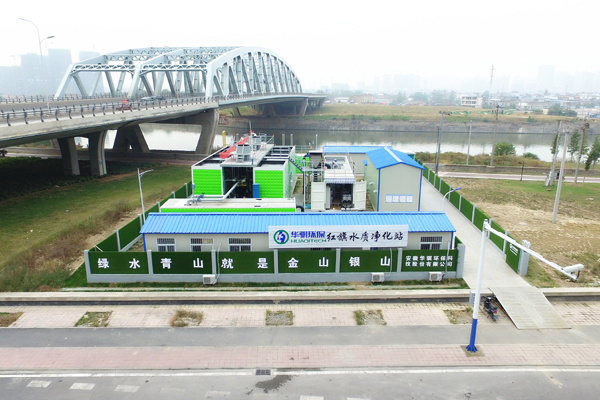 合肥市南淝河流域應(yīng)急污水處理服務(wù)紅旗泵站位于上海路與濱河路交口西南角,工程占地約1230㎡,設(shè)計(jì)處理能力5000m3/d,采用我司研發(fā)的Rapid-Move黑臭水體旁路處理系統(tǒng)——“魔方磁(磁混凝系統(tǒng))+魔方尊(BAF系統(tǒng))”組合工藝產(chǎn)品。進(jìn)水從柳蔭塘路下方自流箱涵末端取水,當(dāng)水量不足時(shí),從紅旗排澇泵站進(jìn)水前池泵提取水或?yàn)I河路污水管網(wǎng)泵提取水,出水通過(guò)管道接入紅旗排澇泵站出水箱涵,出水達(dá)到地表準(zhǔn)IV類水標(biāo)準(zhǔn)。