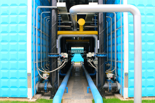 合肥市南淝河流域應(yīng)急污水處理服務(wù)樅陽路泵站工程占地約1053.5m2,設(shè)計(jì)處理能力5000m3/d,采用我司研發(fā)的Rapid-Move黑臭水體旁路處理系統(tǒng)——“魔方磁(磁混凝系統(tǒng))+魔方尊(BAF系統(tǒng))”組合工藝產(chǎn)品。進(jìn)水從幸福路下方自流箱涵末端取水,當(dāng)水量不足時(shí),從樅陽排澇泵站進(jìn)水前池泵提取水或?yàn)I河路污水管網(wǎng)泵提取水,出水通過管道接入樅陽排澇泵站出水箱涵。