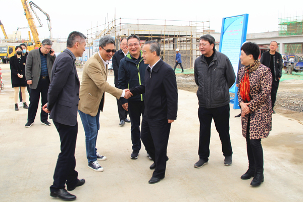 張書記聽(tīng)取總裁鄭杰(右二)匯報(bào)項(xiàng)目進(jìn)展工作后面露微笑