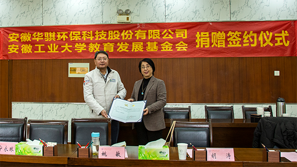 2022年1月14日,安徽華騏環(huán)??萍脊煞萦邢薰九c安徽工業(yè)大學(xué)戰(zhàn)略合作簽約儀式在安徽工業(yè)大學(xué)會(huì)議中心舉行。華騏環(huán)保董事長王健,副總胡一強(qiáng)、費(fèi)煜青,安工大副校長顧明言,校友處處長、教育發(fā)展基金會(huì)秘書長甘亞,體育部黨總支書記、主任胡濤,工會(huì)主席姚敏,學(xué)生工作部(處)處長何偉,團(tuán)委書記王菁,校友工作處副處長、教育發(fā)展基金會(huì)副秘書長寧永球,體育部副主任程小坡出席了簽約儀式。體育部副主任李艷主持本次簽約儀式。此次簽約旨在為支持安徽工業(yè)大學(xué)教育事業(yè)的發(fā)展,支持安徽工業(yè)大學(xué)校園科技文化體育活動(dòng)。