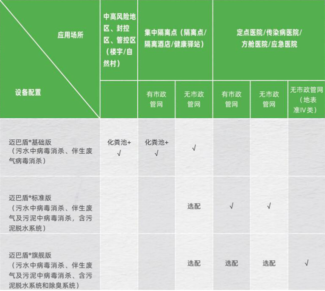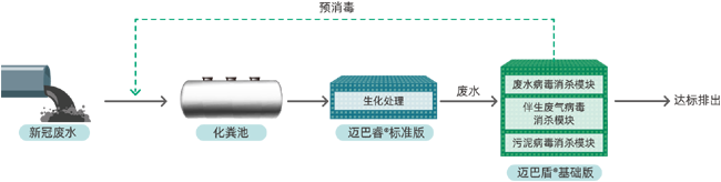 在邁巴盾®基礎(chǔ)版上增加了伴生廢氣中氣溶膠病毒和伴生污泥中病毒的全面消殺,并包含污泥脫水系統(tǒng)。消殺后相關(guān)指標(biāo)可達(dá)到《醫(yī)療機(jī)構(gòu)水污染物排放標(biāo)準(zhǔn)》(GB18466-2005)要求及《醫(yī)學(xué)隔離觀察設(shè)施設(shè)計(jì)標(biāo)準(zhǔn)》和《新型冠狀病毒感染的肺炎傳染病應(yīng)急醫(yī)療設(shè)施設(shè)計(jì)標(biāo)準(zhǔn)》(T/CECS661-2020)。