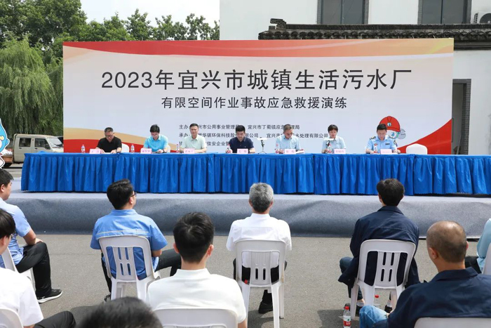 6月,小荷初露,茉莉飄香,宜興市華騏污水處理有限公司在“畢業(yè)季”里交出了一份令人滿(mǎn)意的答卷,宜興華騏從江蘇省76座縣級(jí)以上城鎮(zhèn)污水廠中脫穎而出,在江蘇省住房和城鄉(xiāng)建設(shè)部2021年度城鎮(zhèn)污水處理廠運(yùn)行管理工作考核中獲評(píng)優(yōu)秀。而今年6月亦是第22個(gè)全國(guó)“安全生產(chǎn)月”,為進(jìn)一步鞏固污水板塊安全生產(chǎn)形勢(shì),加強(qiáng)污水處理行業(yè)有限空間作業(yè)管理,提高有限空間作業(yè)事故應(yīng)急救援能力,6月20日,由宜興市公用事業(yè)管理局、宜興市丁蜀鎮(zhèn)應(yīng)急管理局主辦,安徽華騏環(huán)??萍脊煞萦邢薰境修k的“2023年宜興市城鎮(zhèn)生活污水廠有限空間作業(yè)事故應(yīng)急救援演練”在宜興市華騏污水處理有限公司開(kāi)展,宜興市公用事業(yè)管理局黨組書(shū)記、局長(zhǎng)毛俊擔(dān)任演練總指揮,華騏環(huán)保副董事長(zhǎng)鄭俊出席并觀摩了此次演練,副總裁程曉玲做主題發(fā)言。宜興華騏污水公司、佳安企業(yè)管理公司參與演練,丁蜀鎮(zhèn)應(yīng)急局、宜興市城市污水廠、宜興北控公司、歐亞華都水務(wù)公司等相關(guān)領(lǐng)導(dǎo)全程觀摩演練活動(dòng)。