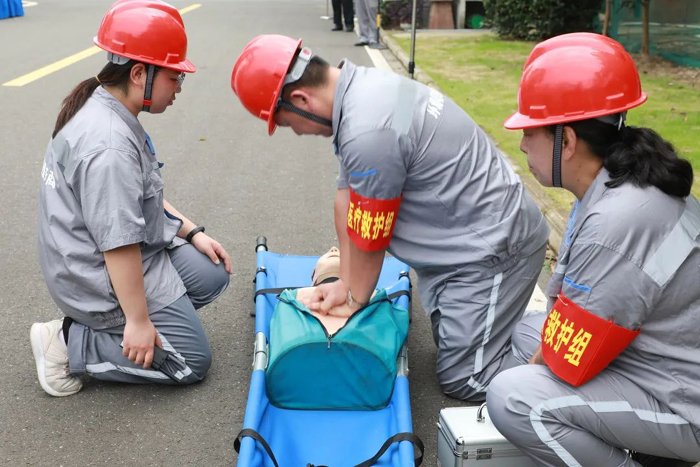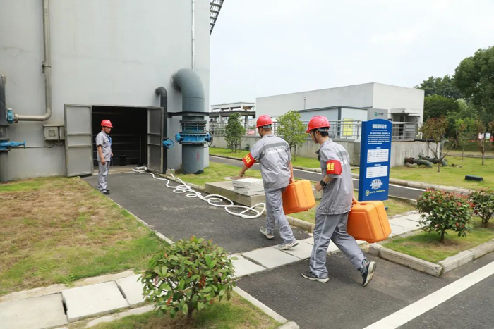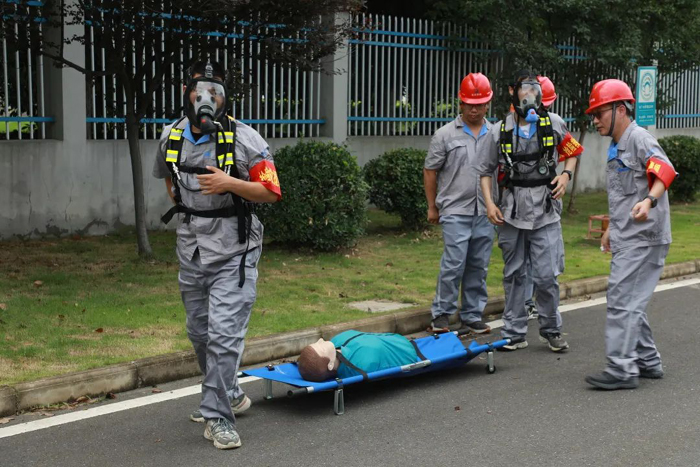 當(dāng)天下午2點(diǎn),演練正式開(kāi)始。演練場(chǎng)景模擬華騏污水廠磁混凝沉淀池污泥泵房?jī)?nèi)員工在處理污泥泵出口壓力不正常過(guò)程中,未遵守作業(yè)規(guī)程,違規(guī)摘掉正壓送風(fēng)長(zhǎng)管呼吸器,吸入有毒氣體后中毒暈倒?,F(xiàn)場(chǎng)人員發(fā)現(xiàn)后立即上報(bào)公司領(lǐng)導(dǎo),經(jīng)理趕赴事故發(fā)生區(qū)域,成立現(xiàn)場(chǎng)指揮部,啟動(dòng)《有限空間作業(yè)事故專(zhuān)項(xiàng)應(yīng)急預(yù)案》,應(yīng)急救援人員穿戴正壓式空氣呼吸器,攜帶擔(dān)架深入污泥泵房將受傷人員救出;醫(yī)療救護(hù)人員對(duì)中毒人員進(jìn)行心肺復(fù)蘇,救援的同時(shí)撥打 120 急救電話進(jìn)行醫(yī)療救護(hù)求助。最終在各單位的全力配合下,圓滿(mǎn)完成此次應(yīng)急救援任務(wù)。