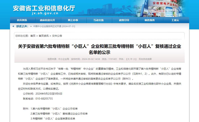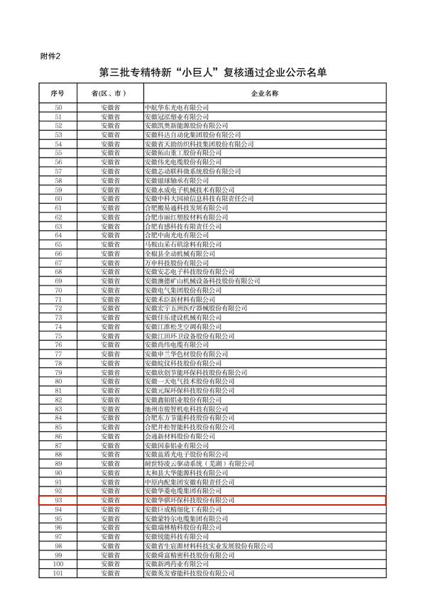為深入貫徹習(xí)近平總書記關(guān)于“培育一批‘專精特新’中小企業(yè)”的重要指示精神,工業(yè)和信息化部于近日開展了第六批專精特新“小巨人”企業(yè)培育和第三批專精特新“小巨人”企業(yè)復(fù)核工作,安徽華騏環(huán)保科技股份有限公司通過第三批專精特新“小巨人”企業(yè)復(fù)核并完成公示。